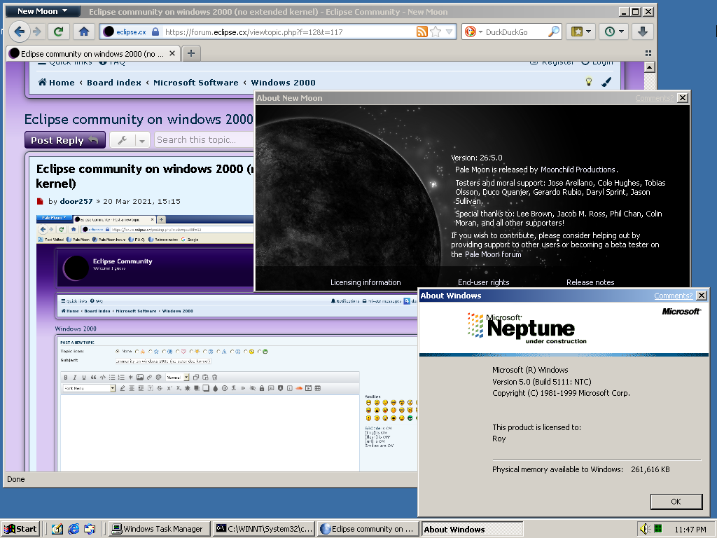 Eclipse community on windows 2000 (no extended kernel)
