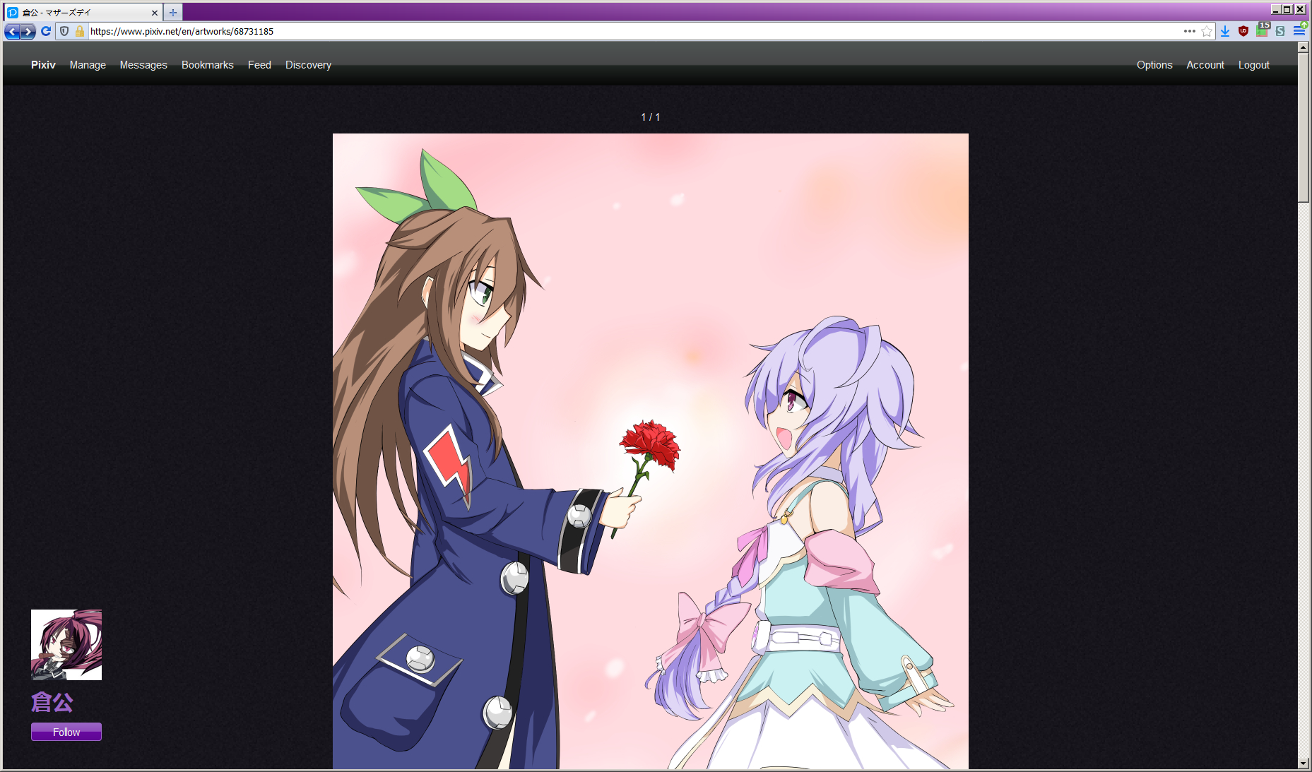 Version requirements: Firefox 57.0a1 or newer, however it does partially work with the 56 based Waterfox Classic. Full quality artwork is shown with Waterfox Classic, however the suggested images below the artwork and the images on the artist's webpage don't load.