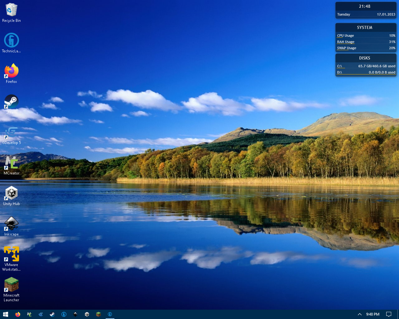 Here is my desktop! I recently cleaned it up alongside my Downloads folder (as they were just a pure mess) and I got this! Also got myself some gadgets a few minutes ago, and I think they mesh well with the wallpaper and the Longhorn taskbar