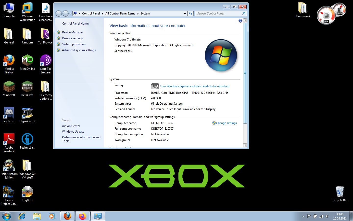 Yeah, the Desktop of my 2008 Acer Aspire 7730G with a Core 2 Duo going up as high as 2.53Ghz, a crusty Nvidia GeForce 9600m GT and 4 GB of DDR2 RAM.